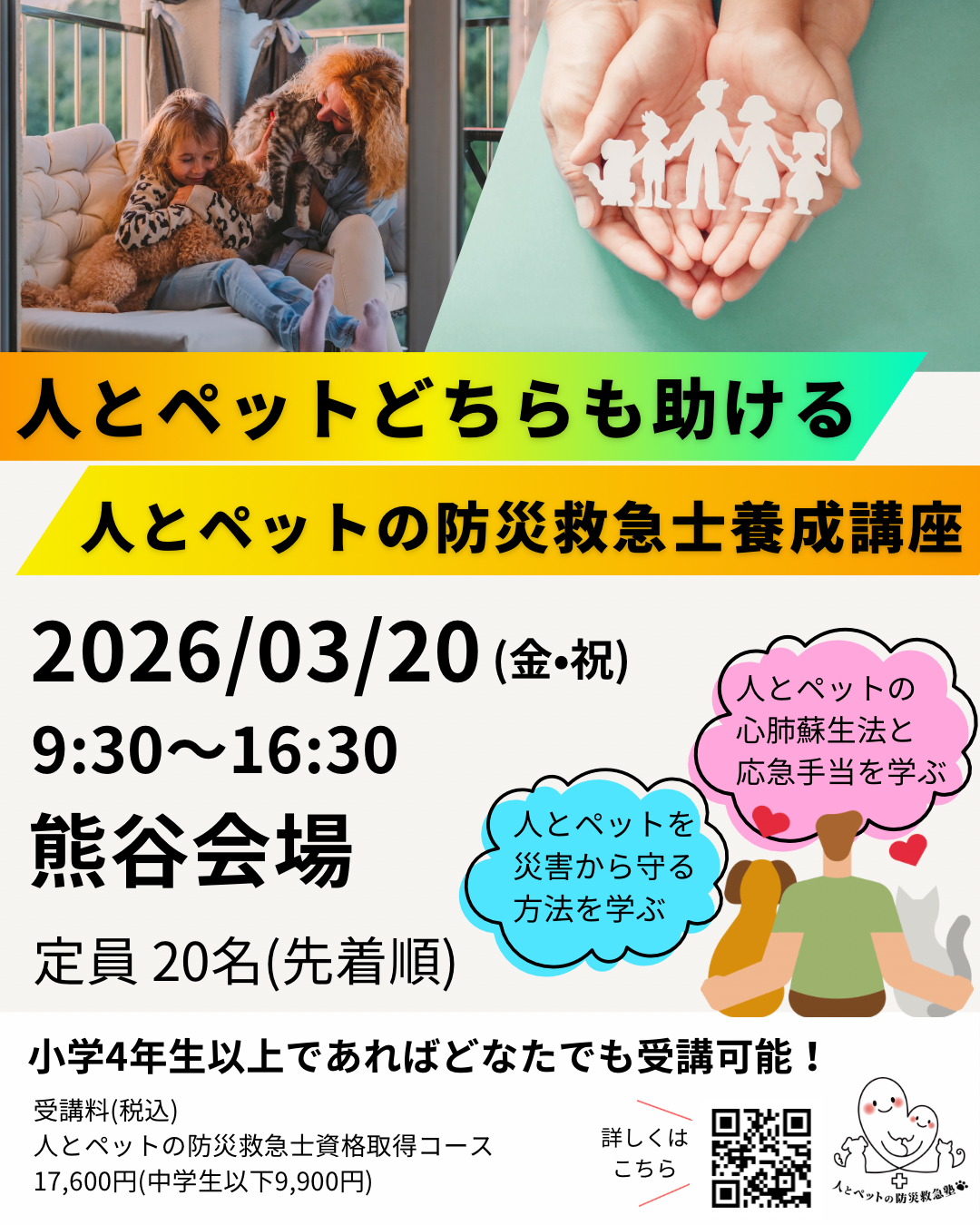 当講習の講師は、実際の災害現場での救命救助活動を行い、人とペット両方の救命法と防災に精通しています。