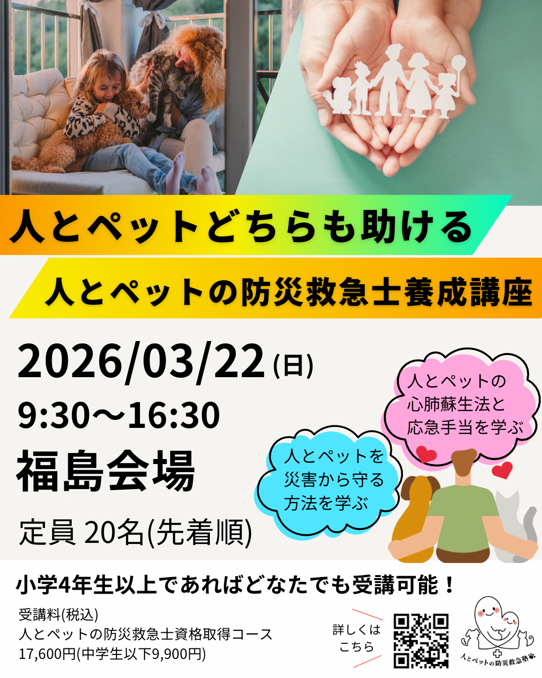 「人とペットの防災救急士」資格取得講習会の受講料(1,000円割引)