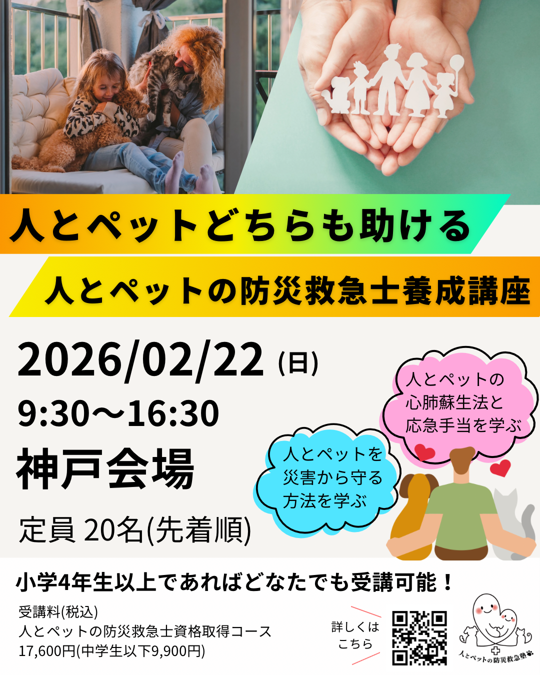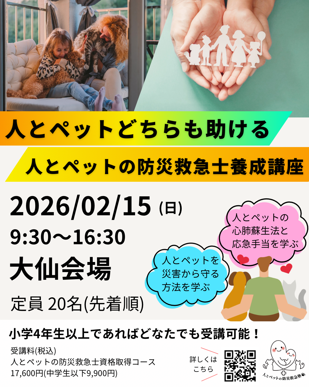「人とペットの防災救急士」資格取得講習会の受講料(1,000円割引)
